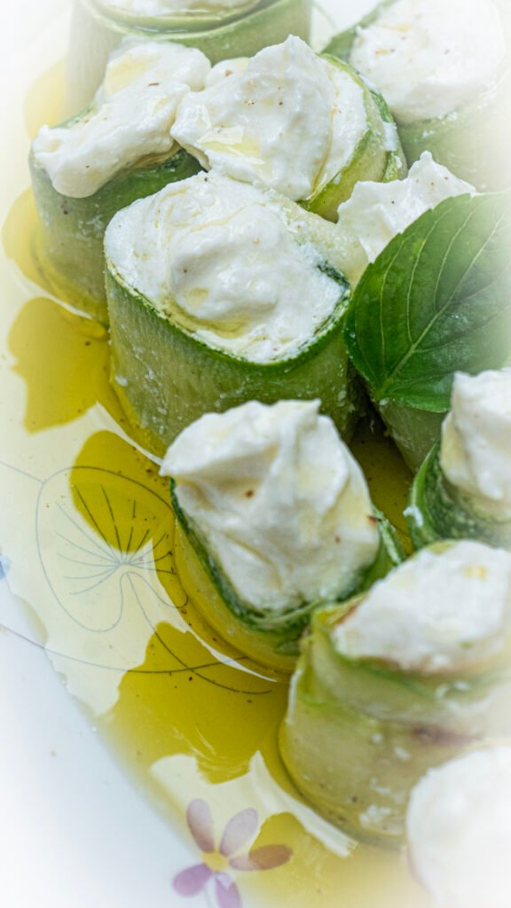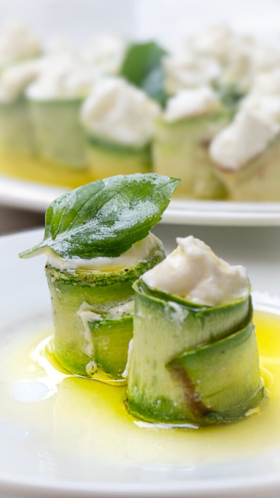 No lançamento mais recente deste buffet, tive o prazer de fotografar um prato que traduz perfeitamente a proposta de um menu leve e sofisticado para o verão: rolinhos de abobrinha recheados com creme de ricota e finalizados com azeite de manjericão. Como fotógrafa de alimentos, meu objetivo foi capturar não apenas a estética do prato, mas a sensação de frescor e delicadeza que ele oferece já no primeiro olhar.